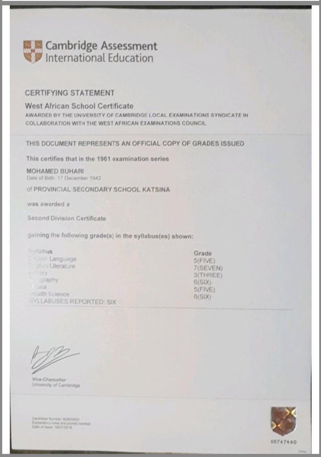 “Cambridge Assessment International Education had to issue a certifying statement that indeed President Buhari sat for his examinations in 1961. It was because the institution was inundated with requests for the verification of his result.”